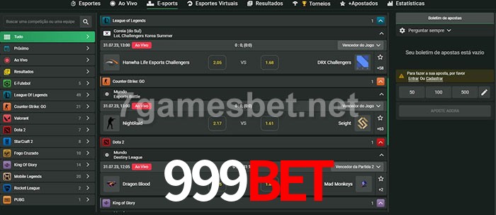 O 999Bet oferece uma grande seleção de opções de apostas em e-sports com probabilidades competitivas
